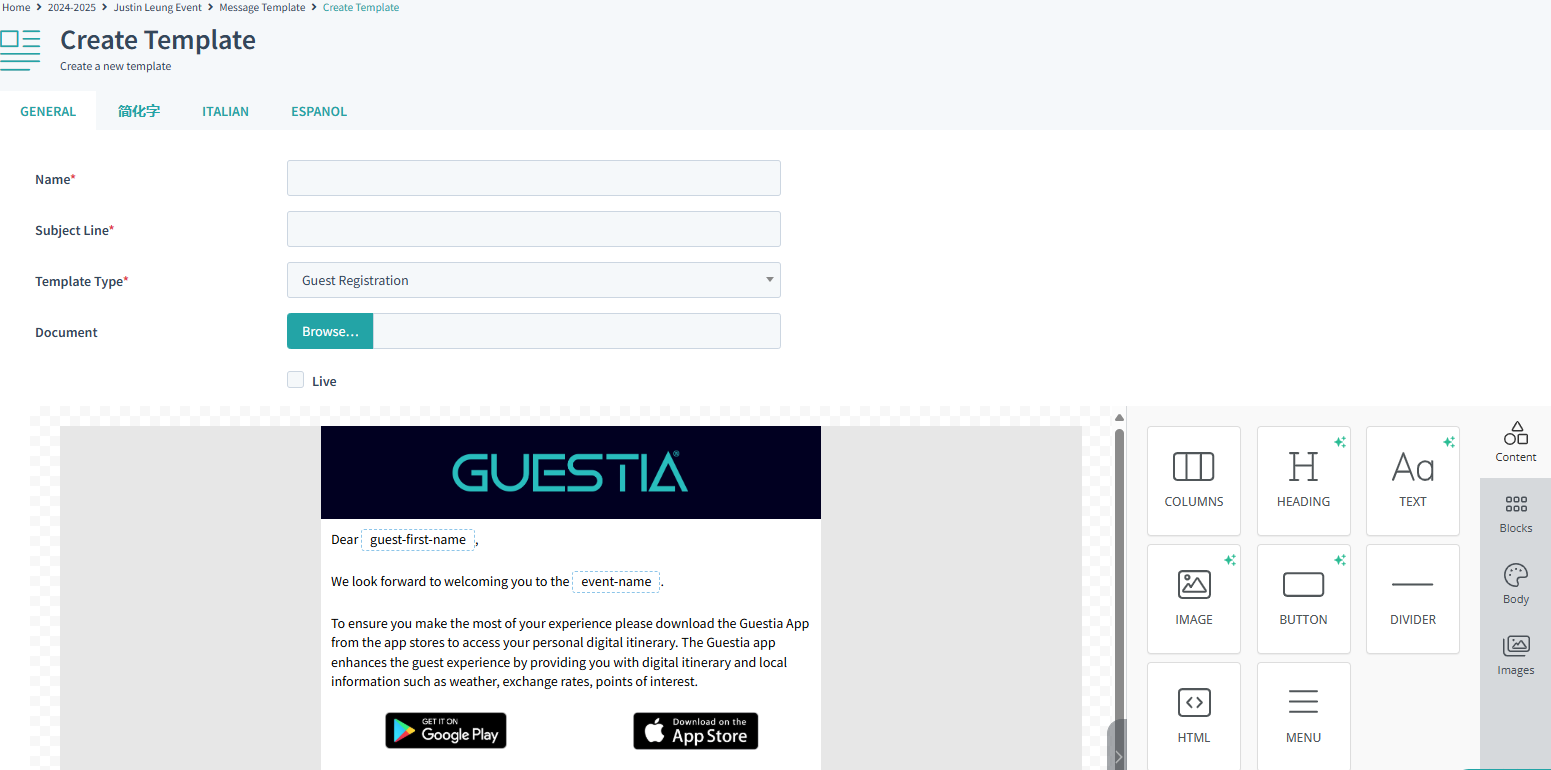 If you have not selected an Invitation message template, you can create one from scratch for your event/company.