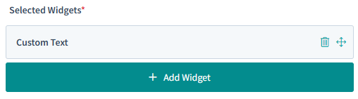 Once added Custom Text will show under 'Selected Widgets'