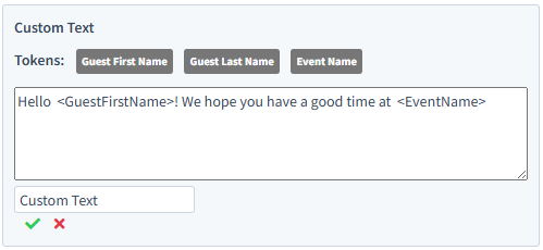 Clicking on the text 'Custom Text' will allow you to edit the content of the text, as well as some tokens to personalise the text to the reader.