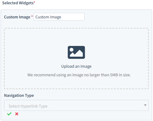 Clicking on the text 'Custom Image' will allow you to change what image is displayed, as well as a 'Navigation Type' field. You can also change the display name of the Custom Image under Selected Widgets by editing the small text box.